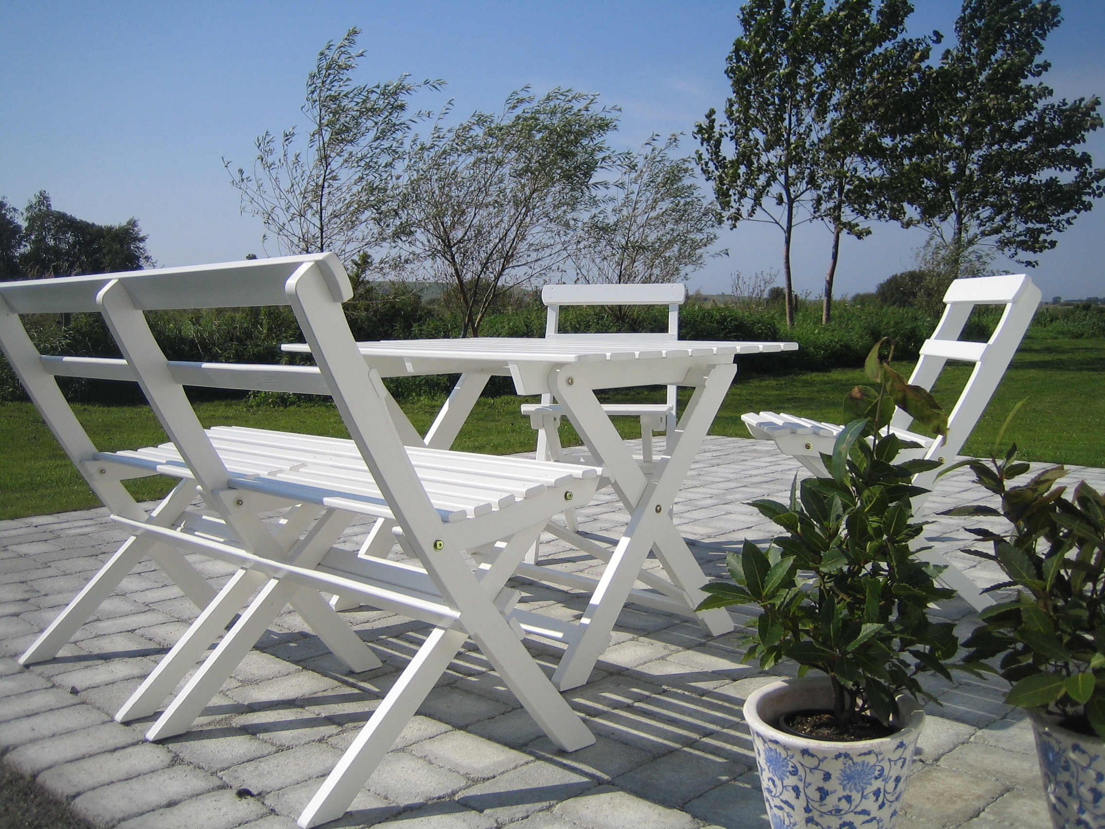 En härlig uteplats med fantastisk utsikt över öppet landskap och Hammars backar. Med härliga trädgårdsmöbler, grill och parasoll.